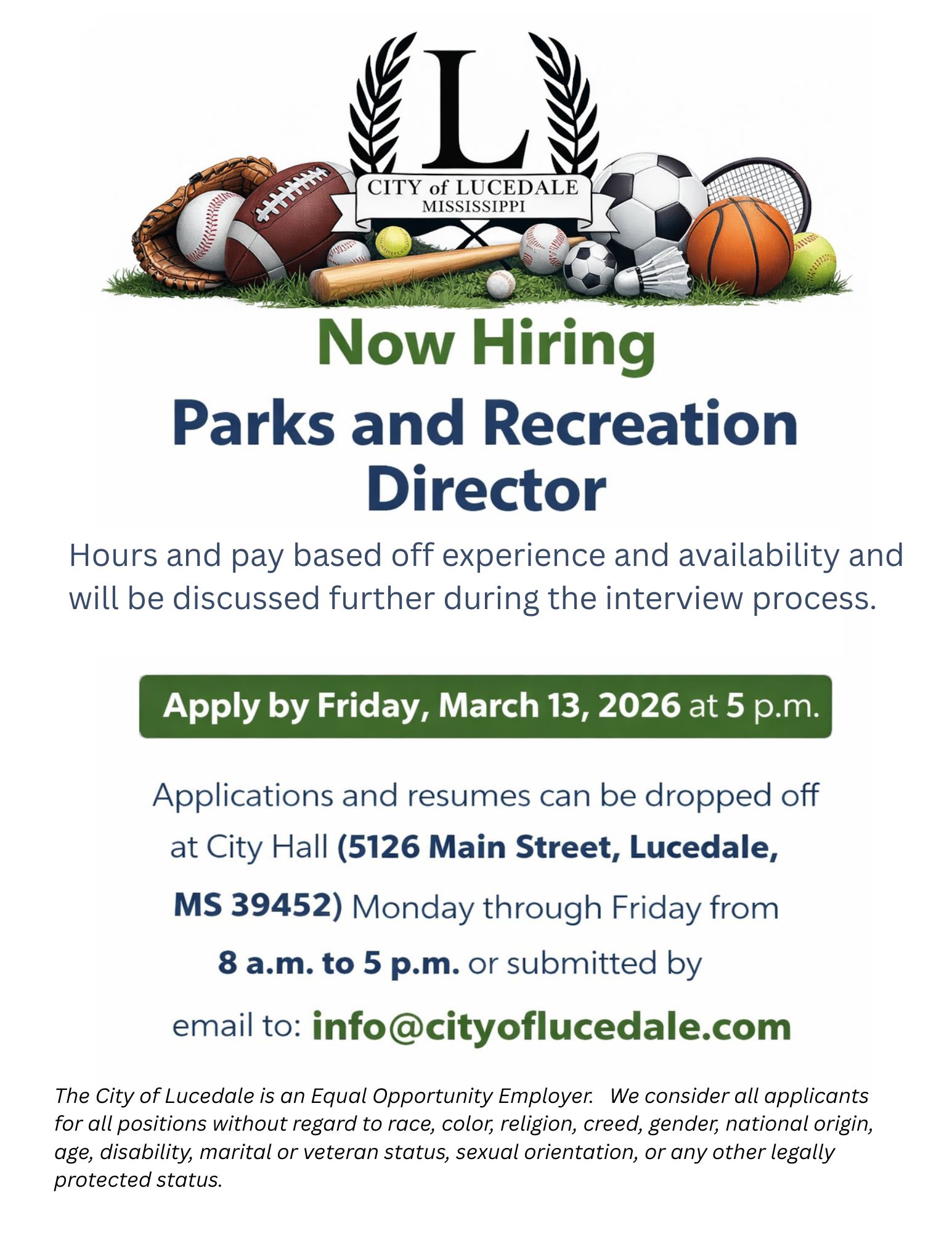 Please click this link here for more information- Parks and Recreation Director job description